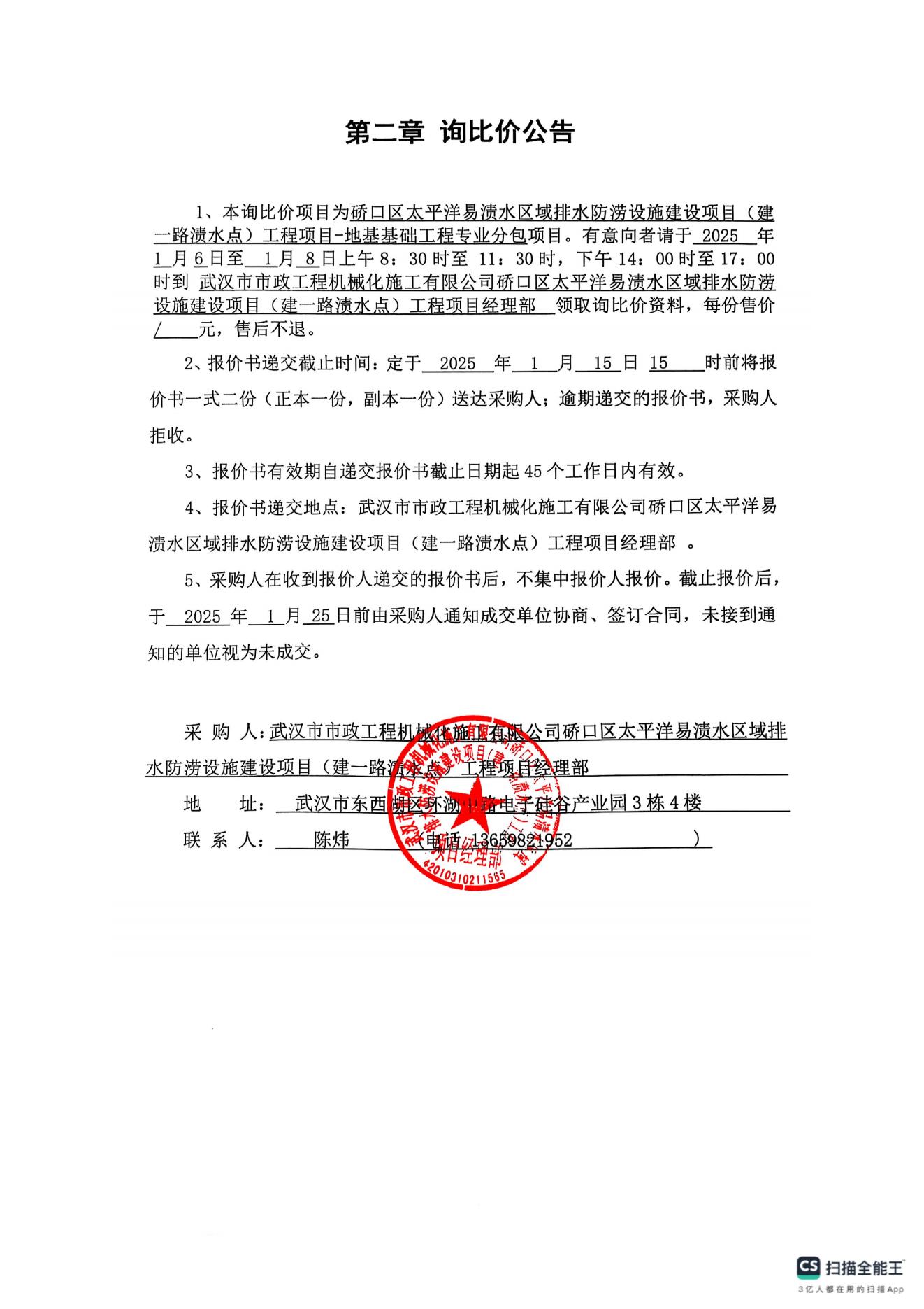 硚口區(qū)太平洋易漬水區(qū)域排水防澇設(shè)施建設(shè)項目(建一路漬水點)工程項目-地基基礎(chǔ)工程專業(yè)分包詢價公告