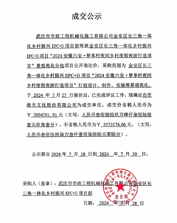 金安區(qū)長三角一體化鄉(xiāng)村振興EPC+O項目“2024安徽六安·夢享村夜間鄉(xiāng)村度假夜游打造項目”景觀亮化分包成交公示