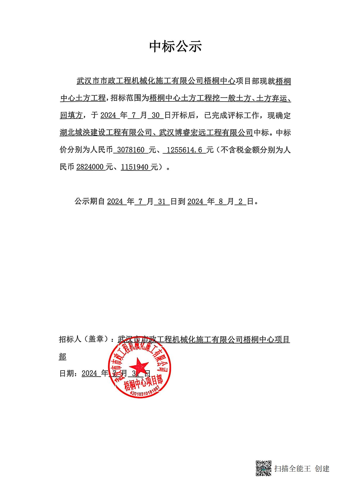 梧桐中心土方工程中標(biāo)公示