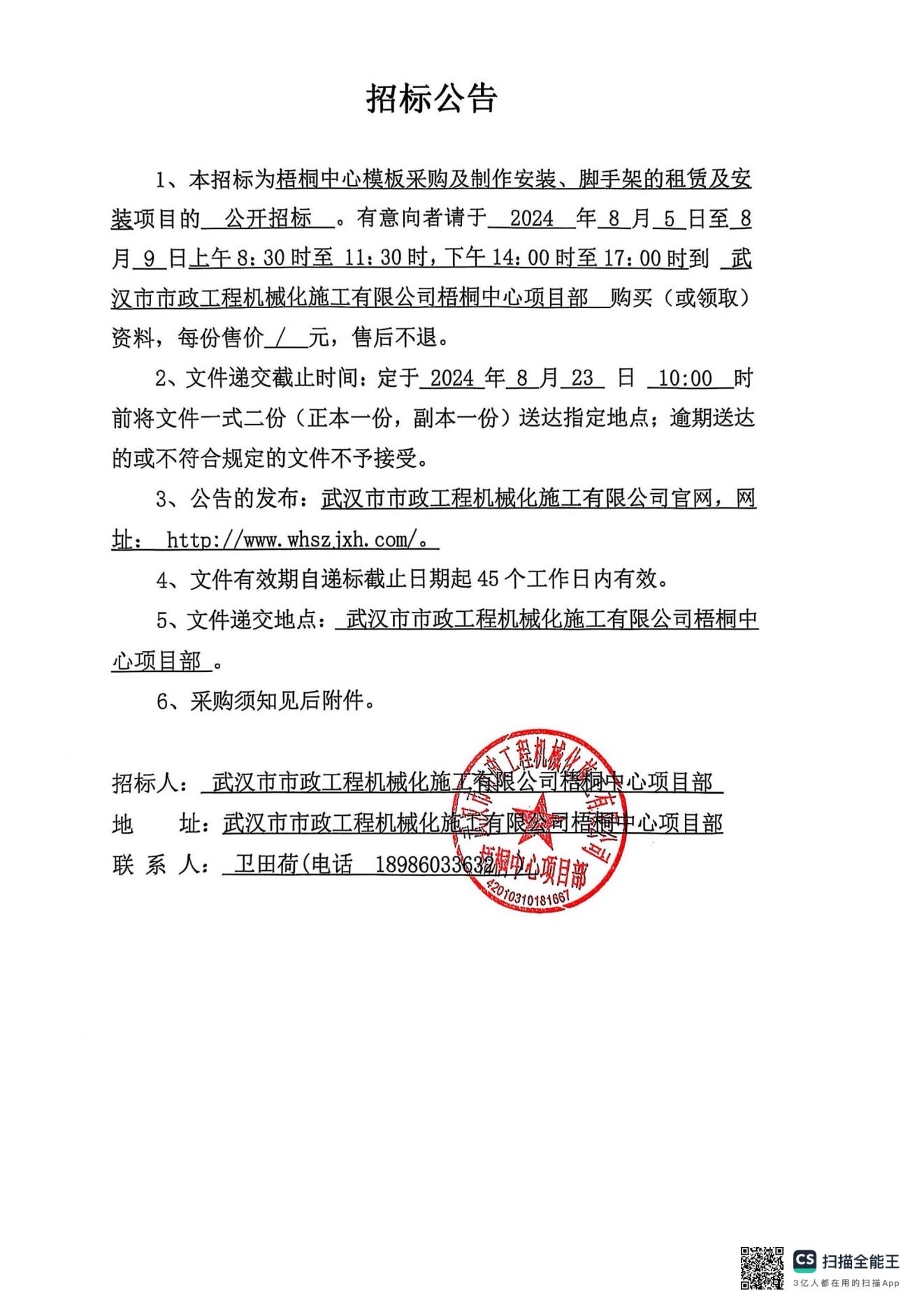 梧桐中心模板采購(gòu)及制作安裝、腳手架的租賃及安裝招標(biāo)公告